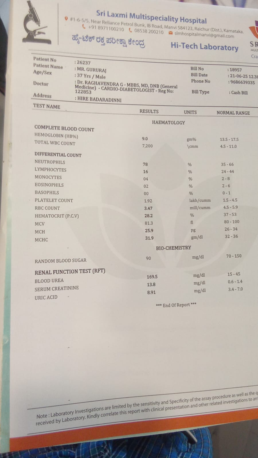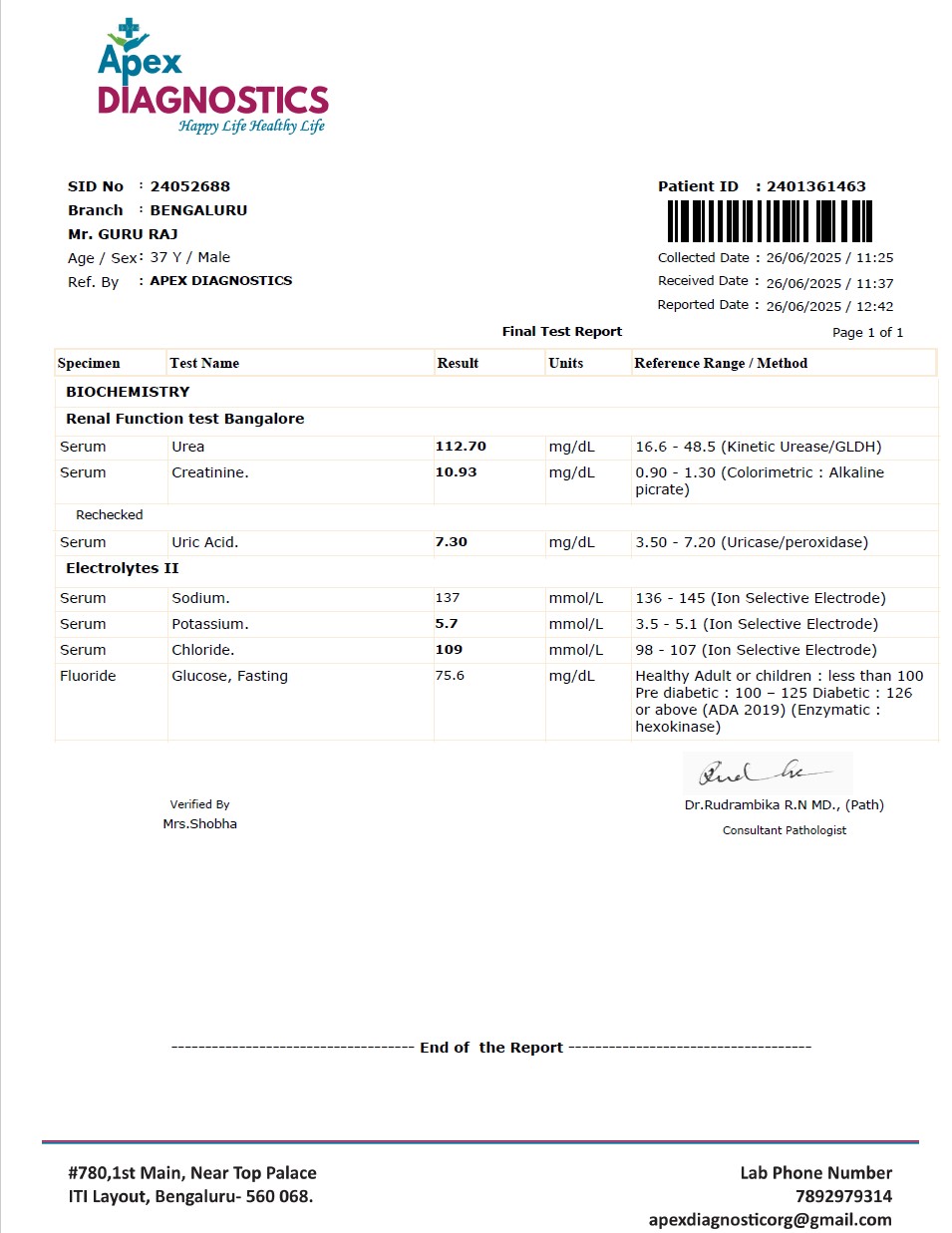 Mr. Gururaj, a resident of Raichur, is currently undergoing integrated care for Chronic Kidney Disease (CKD) at Wellness Worth, a naturopathic health and healing centre led by Dr. Naveed Khan. Coming from a financially challenged background, Gururaj is in urgent need of continued support to access non-invasive, holistic therapies aimed at reversing his CKD naturally.
